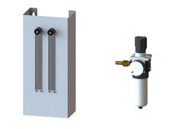 Le tableau de contrôle des gaz 1080 est la version simplifié des débitmètre de Saint Gobain Coating Solution. Il permet d’ajuster le débit de gaz (Acétylène ou Propane) et d’oxygène.